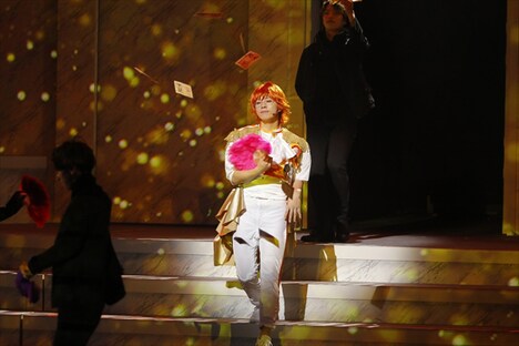 第二幕では、「KING OF PRISM -Shiny Seven Stars-」で描かれた大会「PRISM.1」をステージ上に再現。プロジェクションマッピングやさまざまな小道具も駆使しながら、キャスト陣は熱のこもった歌とダンスで個性豊かなソロショーを表現していく。 “応援上演”と銘打ち、舞台両袖のランプが点灯するシーンではペンライトの使用や発声が可能な本公演。観客が応援し参加することで、「PRISM.1」の会場をよりリアルに体感できるようになっている。