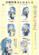 一部書店では購入者に特典を用意しており、アニメイトではA5ビジュアルボード、ゲーマーズではブロマイド、とらのあな、メロンブックスではイラストカードが付属。複数の書店で配布される共通メッセージペーパーも存在する。電子版にも特典が用意されており、COMIC FUZ(芳文社)、DMM.com、BOOK☆WALKER、ebookjapanでの販売分はメッセージペーパーが収録されている。詳細は購入予定の各店で確認を。