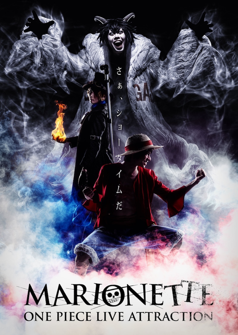 2019年4月より行われてきたキャスト陣による公演が3月8日にファイナルを迎え、3月18日より新体制での公演がスタートする「ONE PIECE LIVE ATTRACTION『MARIONETTE』」。ビジュアルにはルフィ、サボ、シーザーの3人が「さぁ、ショータイムだ」のコピーとともにデザインされている。