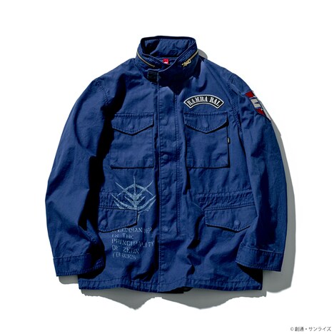 ラインナップされたのは米軍が開発したM-65フィールドジャケットをベースにしたアイテム。ネイビーのランバ・ラルモデルと、オリーブカラーのランバ・ラル隊モデルが取り揃えられた。ランバ・ラルモデルには“RAMBA RAL”の文字、パーソナルマークのエンブレムパッチが縫い付けられている。隊のモデルには“PRINCIPALITY OF ZEON FORCES”の文字やジオン軍マークのエンブレムパッチが刺繍された。どちらも右ポケットや背中内側部分にステンシル風のロゴがあしらわれている。価格は税込各3万6300円。