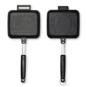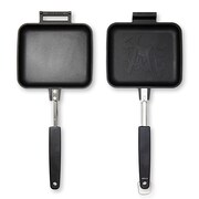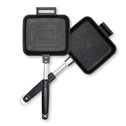鬼殺隊隊服の「滅」の焼き目が付いたホットサンドが作れる本アイテム。金属加工で有名な新潟県燕市で製造され、内側はこびりつきづらいフッ素樹脂加工が施された。また取り外しが可能な蝶番仕様で、片面だけ使って手軽なフライパンとしても使用できる。