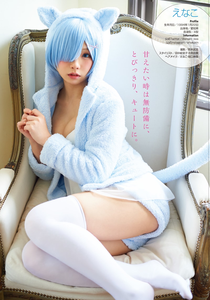 「えなこ×リゼロ コラボグラビア」と題された本企画。えなこはお馴染みのメイド服のレムのほか、学生服のレム、猫耳フードを着たレムという3つの姿を披露した。なお同誌では「Re:ゼロから始める異世界生活」本編のコミカライズである「第四章 聖域と強欲の魔女」、外伝作品をマンガ化した「剣鬼恋歌 Re:ゼロから始める異世界生活†真銘譚」の2作が連載中だ。