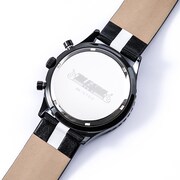 ラインナップされたのは黒崎一護と日番谷冬獅郎をイメージした腕時計、バッグ、パーカーの全6種。死覇装をイメージしたブラックをベースにまとめた一護モデルには、クロノグラフタイプの腕時計、一護の髪色のオレンジが目を引く大容量のバックパック、フロントに「15」と「BLEACH」をプリントしたカジュアルなパーカーがお目見え。また冬獅郎モデルには、ホワイトとシルバーでまとめた上品な腕時計、涼しげなカラーリングと透明感のあるクリアタイプのバッグとポーチのセット、エメラルドグリーンの引き紐が目を引くライトグレーのパーカーが用意された。