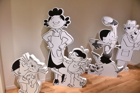 2階には常設展示室「町子の生涯」と企画展示室「長谷川町子の漫画創作秘話」がお目見え。「町子の生涯」は長谷川が送った人生や功績を振り返る内容で、「誕生から少女時代」「サザエさんの誕生」「週刊誌連載」「町子とサザエさん」といったテーマで、長谷川の生涯を楽しむことができる。