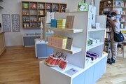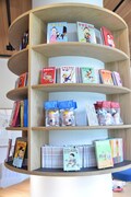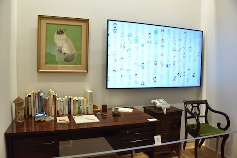 長谷川町子記念館の1階には常設展示室「町子の作品」と、長谷川のグッズを販売する「購買部」とカフェスペース「喫茶部」が登場。「町子の作品」は、代表作である「サザエさん」「エプロンおばさん」「いじわるばあさん」の世界観を、データと書籍の双方向で楽しめる空間で、昭和時代の茶の間を再現した展示も見どころだ。また明るくポップで昭和を感じさせるレトロな雰囲気のショップスペースには、開館に合わせて新たに制作されたオリジナルグッズが所せましと並んでいる。