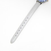 鯰尾藤四郎モデルと同じく胸元の紐飾りをイメージした骨喰藤四郎モデルは、紫とグレーのバイカラー。6時の位置には紋がデザインされ、12時のインデックスには紫のストーンがあしらわれた。そして前田藤四郎モデルは、盤面の中にさりげなくマントの模様をエッチングで施し、ベルト裏には鮮やかなイエローゴールドを配置。小ぶりでどんなコーデにも合わせやすいアイテムがお目見えした。