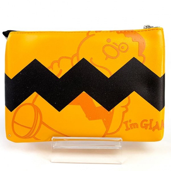 ラインナップされたのは小物ケース、メガネケース、3ポケットポーチ、ミニポーチ、パスケース、クリア素材を使ったマルチケースおよびペンケース、ウェットティッシュのふた。いずれにもジャイアンのイラストが使われており、ジャイアンが着ている服にちなんでオレンジカラーが配色され、黒いギザギザ模様があしらわれている。