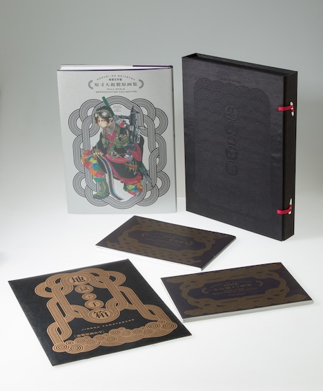 原画集セット「地獄玉手箱」は原寸大の複製原画集、キャラクター解説画集、未公開ラフ画集の3冊に超高精細複製原画5枚を加え、クロス張り、留め具付きの化粧箱に収納したアイテム。動画では、安元らしいコメントとともに本書の魅力や注目ポイントが語られている。