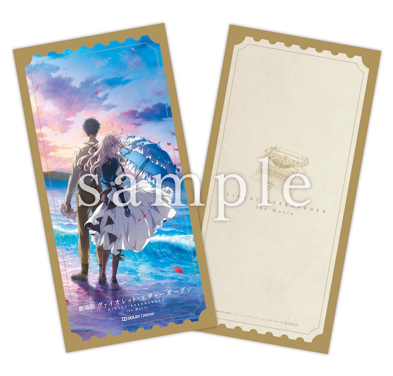 また、その他全国の上映劇場でも新たな入場者特典の配布を11月13日よりスタート。ヴァイオレットとギルベルトが描き下ろされた「エカルテ島からのハガキ」が数量限定でプレゼントされる。なおドルビーシネマ上映劇場では「ドルビーシネマ鑑賞記念レプリカチケット」と「エカルテ島からのハガキ」の両方が手に入る。