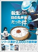 これは去る11月27日にコミカライズ16巻が発売されたことを記念し展開されたもの。朝日新聞(全国版・近畿エリア・東海エリア)、北海道新聞、下野新聞、上毛新聞、西日本新聞という、2021年1月からアニメ「転生したらスライムだった件 第2期」が放送される地域を中心に、リムルが全国に“挨拶回り”している。全国紙での「日の丸弁当」をはじめ、リムルは自身のスキルである擬態を駆使し、各地域の名物・名産品に姿を変えた。イラストは全7種用意され、いずれも川上がこの企画のために描き下ろしたもの。擬態したリムルを見つけた人はTwitterでハッシュタグ「#転スラ新聞」とともに報告してみては。