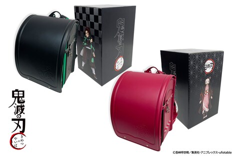 「鬼滅の刃」ランドセル、黒×緑の炭治郎モデルと赤×ピンクの禰豆子モデル