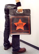 LPレコードバッグはディスクユニオンの定番アイテム。今回のコラボ商品には片面にディスクユニオンのロゴを、逆の面には「HTT(放課後ティータイム)」のロゴをプリント。まさに音楽ファンにも「けいおん!」ファンにもたまらない、両A面仕様の逸品だ。また底部にもエンボス加工で「けいおん!」ロゴとディスクユニオンのロゴが印字されている。