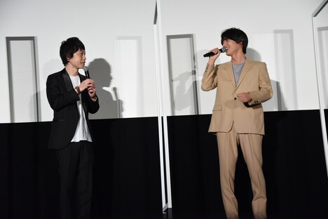 そんな見取り図の2人は、「ジョゼと虎と魚たち」で初めて声優に挑戦。中川演じる恒夫のバイト先の店長という役を務めた盛山は、「すごい難しかったです。僕は大阪出身で、(演じているのも)大阪弁のキャラなんですが、何回か録り直してたら、大阪弁が自分でもわからんようになって。最終的にエセ関西弁みたいにしゃべってた」と苦労を語った。リリーは「本当に楽しかったので、もし続編があったら僕にジョゼ役をぜひ」とアピールするも、盛山から「お前一言しかしゃべってへんねんで!」とツッコまれる。しかしここで驚きのエピソードが。大阪の実在の場所が多数登場する「ジョゼと虎と魚たち」だが、なんとリリーが駅員を演じた劇中の駅は、リリーが普段から使っている最寄駅であるという。盛山も「こんな奇跡あります!?」とアピールしてみせた。