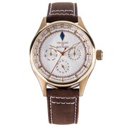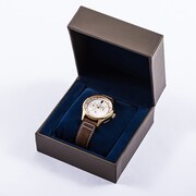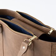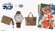 ラインナップされたのは腕時計・バッグ・財布の3アイテム。ブルーウォーターをイメージしたストーンが12時の位置に配置された腕時計は、盤面にナディアたちが目指したヨーロッパ・アフリカ周辺の海図がデザインされたシックな仕上がりに。ボディの側面に同じく海図が型押しされたショルダートートバッグには、ブルーウォーターをイメージした取り外しできるチャームが添えられた。また二つ折り財布のカードポケットには、ナディアの髪色と金のアクセサリーを彷彿させる切り替えがあしらわれた。二つ折り財布にもブルーウォーターをイメージしたチャームが付属する。