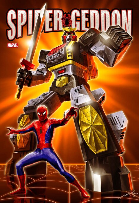 「スパイダーゲドン」は、2016年に発売された「スパイダーバース」の続編。ビデオゲーム「Marvel's Spider-Man」版のスパイダーマン、日本生まれの特撮版スパイダーマン、彼が搭乗する巨大ロボットのレオパルドンのほか、マイルス・モラレス、スパイダーマン・ノワール、スパイダーグウェン、ペニー・パーカーといったスパイダーヒーローが登場し、新たにスパイダー軍団を編成したスパイダーマンたちの戦いが描かれる。また同時発売される「エッジ・オブ・スパイダーゲドン」は、「スパイダーゲドン」の前日譚だ。