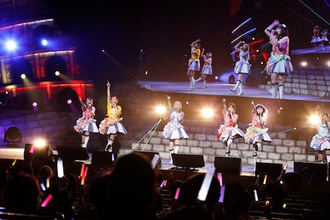 「To my Dearest」では、静かなピアノの音色に乗せて澄んだ歌声を響かせる田中のソロから始まり、ほかのメンバーが加わっていくという演出でファンの涙を誘う。個性豊かなキャラクターに合わせて、さまざまな声の魅力を持ったフランシュシュメンバー。続く「光へ」ではそんな6人ならではの美しいハーモニーを聞かせた。ライブ本編の最後を飾ったのは、田野が涙ぐみながら「歌いたかった曲」と語った「輝いて」。「みんなに届いてほしいし、みんなに輝いてほしいです」という思いを込めて、6人は振り絞るような熱唱で会場を包み込んだ。