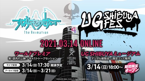 また「すばらしきこのせかい The Animation」の放送に先がけ、3月14日にはオンラインイベント「UG SHIBUYA FES」を開催。イベントはメインキャストが生出演する第1話上映会「ワールドプレミア」と、デジタル展覧会「UG SHIBUYAミュージアム」を軸に構成される。チケットなどの詳細は、アニメの公式サイトで確認を。