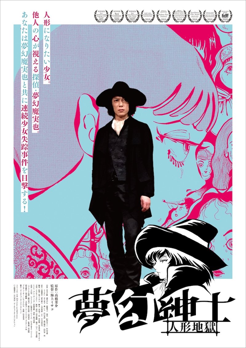 「夢幻紳士」シリーズは青年探偵・夢幻魔実也(むげんまみや)を主人公とした怪奇ミステリー。1980年代に月刊マンガ少年(朝日ソノラマ)で連載がスタートし、その後雑誌の休刊・廃刊などの事情で掲載誌を変えながらも、今日までミステリマガジン(早川書房)などで発表が続けられている。「夢幻紳士 人形地獄」は監督の海上ミサコがクラウドファンディングにて資金の一部を募り映画した作品で、完成から時を経て劇場公開に至った。
