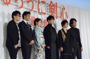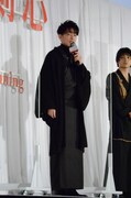 幕府側の侍を演じた村上、北村、江口。村上は「衣装合わせに行ったとき、原作の沖田総司のビジュアルとは違っていて。衣装を着て江口さんと並んだ姿を見て、『あ、これは今まで10年間紡がれてきたシリーズとは少し違う方向性のものを作るんだな』と思いました。剣心という架空のキャラクターがいる中で、実在した人物を演じるということは、下手な“キャラクター感”を許してくれないんだなと思いました」と話した。