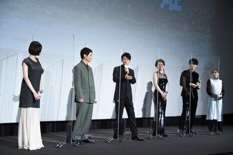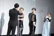 その後もキャストからは「フランスで美味しいもの食べてますか?」「誰かスターはいましたか?」「14分間の拍手を受けている間、何をしてたんですか?」などの他愛ない質問が。細田監督は質問に真摯に回答しながら、キャスト1人ひとりへの感謝を伝える。中村の番には「映画見終わった後、歌を口ずさみながら帰っていく人がすごく多くて。だから日本語だからとか、言葉は関係ないなと思いましたね。その光景を目の当たりにして、ベルというキャラクターのは本当に世界の中心で歌ってたんだなってことを改めて実感しました」と誇らしげだった。