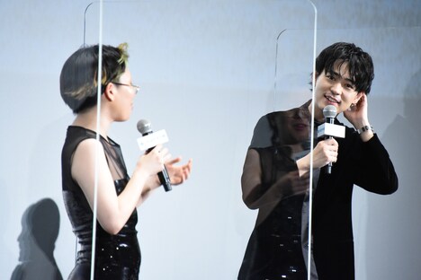 カンヌで手ごたえを感じたという細田監督に、染谷は「どんな感想が多かったですか?」と質問。細田監督は「新しいものを見る興奮が伝わってきました。スケールの大きさや、ベルの歌声に対する感動もあると思うんですけど、染谷くんと玉城さんが演じたささやかなシーンも笑いが沸き起こってて、隅々まで味わってくれてるなと感じてうれしかったです」と答える。