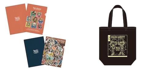 またミニキャライラストを使った缶バッジ、クリアファイルセット、トートバッグなどのグッズを展開。同じ商品がカフェの公式オンラインショップでも販売される。