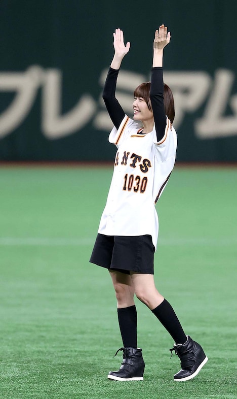 ピッチャーを松岡、キャッチャーを安元が務め、竹達は応援代表を担当。着ぐるみのキリトも応援に駆け付ける中、緊張した様子の3人はカートに乗ってマウンドに登場した。練習では力強い投球を見せ、本番に挑んだ松岡だったが、投球がまさかのボークになってしまう場面も。会場からの温かい視線を一身に受け、松岡がゆったりとしたフォームで改めて投球すると、バウンドすることなく安元がキャッチする。その後一度落球してしまったものの、始球式は無事に終了した。