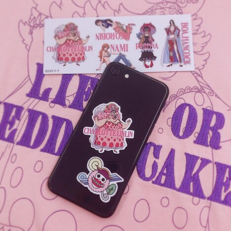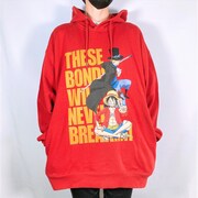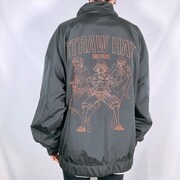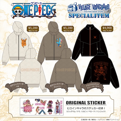 アイテムとして登場したのは、グラフィックプルパーカー、キャラ刺繍ボアジャケット、グラフィックトラックジャケット。グラフィックプルパーカーは、ナミやハンコックなどのヒロインキャラ、ロジャーと白ひげのコンビ、ルフィ3兄弟の全3種類がラインナップされた。キャラ刺繍ボアジャケットはベポとチョッパーの全2種類。それぞれのキャラクターが胸元に刺繍されており、“もこもこ感”をイメージさせる仕上がりとなった。また、胸元に麦わらの一味の海賊旗がプリントされたグラフィックトラックジャケットは、バックにルフィ、ゾロ、サンジの勇ましい姿がデザインされている。さらに商品購入でもれなくヒロインキャラがプリントされたステッカーをプレゼント。