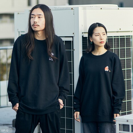 スウェットは、オープニングアニメに登場する小戸川とヤノの姿を胸元に刺繍した2つのデザインで展開。背面の上部には、オーディオドラマからピックアップした小戸川とヤノのセリフが英語でさり気なくプリントされている。カラーは小戸川がブラックとアイビーグリーン、ヤノがブラックとバーガンディの2色ずつ用意された。