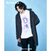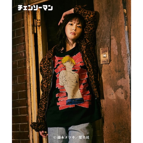 登場したのはTシャツ、ロングTシャツ、スウェット、パーカー、MA-1ジャケットの全14種。「Denji T」には主人公・デンジのダークヒーローとしての佇まいが、パンクアートの手法を取り入れながら描かれている。マキマの姿をデザインした「Makima Sweat」はストリートテイストに、アキの姿をプリントした「Aki Sweat」は水彩画風で叙情的な雰囲気に。「Chainsaw Devil MA-1」では藤本の原画に着色が施され、1980年代のメタルTシャツのような陰影のあるカラーリングで背中にデザインされた。