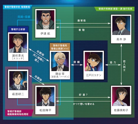 また5枚の場面カットとキャラクター相関図も公開された。ストーリーの鍵を握る警察学校組と佐藤刑事&高木刑事の関係が明らかとなっている。劇場版「名探偵コナン ハロウィンの花嫁」は2022年4月15日に全国東宝系にてロードショー。