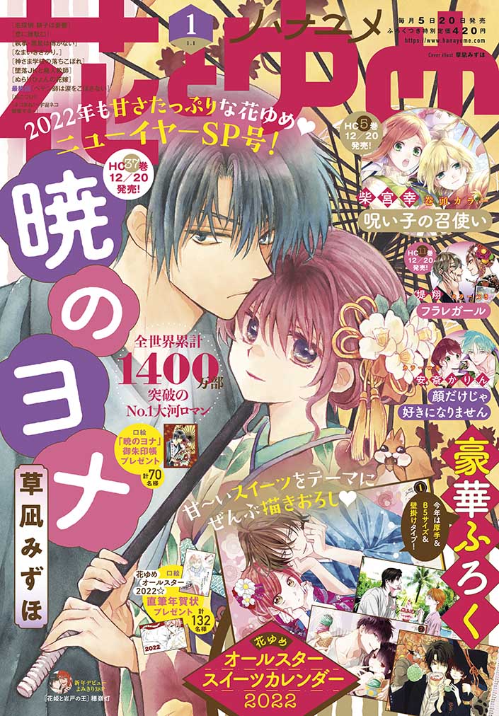 また今号では、花ゆめ作家陣32人による直筆年賀状が当たる「花ゆめオールスター2022☆直筆年賀状プレゼント」も実施。応募の詳細は誌面で確認しよう。なお浅葉さつきの集中連載「ペテン師は涙をこぼさない」は最終回を迎えた。