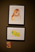 第3章「かるたを一緒にしてくれてありがとな~青春全部を懸けた闘い~」、第4章「行こう一緒に不尽の高嶺へ~名人戦・クイーン戦~」でも、物語の時系列に沿って原画を展示。第5章「ちはやぶる 神代も聞かず 竜田川 からくれなゐに 水くくるとは ~漫画家・末次由紀の筆遣い~」では、執筆風景やインタビュー映像を交えて、末次の表現に対する探究心、創作への熱意、作品にかける思いに迫る。インタビュー映像では同展のメインビジュアルで描いたサザンカや水引、そして「ちはやふる」で描きたいテーマについて語られた。