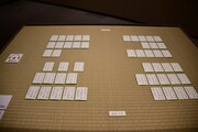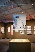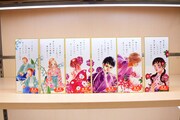第2章「仲間がいたら強くなれる~かるたでつながる輪~」は、千早、太一、新が高校生活を通じて新たなかるた仲間に出会い、成長していく姿を振り返っていく展示に。高校選手権団体戦の3位決定戦で戦った、千早と新の初期配置を畳の上で再現したコーナーも設けられた。さらに作中に登場した和歌の中から、3人の心情を映した6首を現代語訳、解説とともに紹介するパネルも。スピーカーからは専任読手による豊かな読みも音声で流れた。