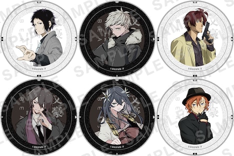 公開中の映画「文豪ストレイドッグス BEAST」は、「文豪ストレイドッグス」の主人公・中島敦とその宿敵である芥川龍之介の所属組織がもし逆だったら、というif設定で展開される異能アクションバトル。缶バッジの絵柄は各週6種ずつ用意されており、入場者にはランダムで1つが配られる。それぞれのバッジには春河35と新井が「文豪ストレイドッグス BEAST」の世界観に基づき描いた芥川龍之介、中島敦、織田作之助、太宰治、泉鏡花、中原中也がデザインされた。3週目特典は1月21日から27日まで、4週目特典は1月28日から2月3日まで配られる。