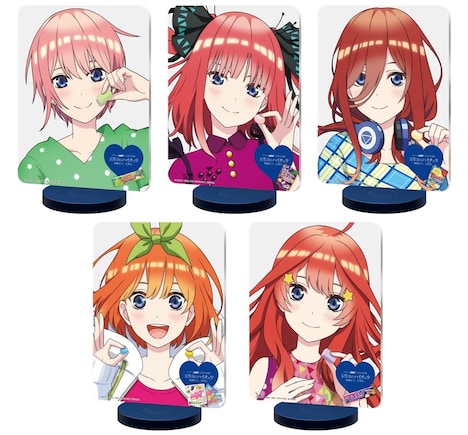 今回のコラボでは5月20日の映画公開当日までの期間を“五等分”し、2月15日11時から3月3日までの第1弾を一花、3月4日11時から22日までの第2弾を二乃、 3月23日11時から4月7日までの第3弾を三玖、4月8日11時から27日までの第4弾を四葉、4月28日11時から5月20日までの第5弾を五月がそれぞれ担当。各期間、「ハイチュウ」シリーズを購入した人の中から抽選で合計325人に「ボイス付きアクリルスタンド」や描き下ろしのオリジナルQUOカードセットなどが当たるプレゼントキャンペーンが展開される。