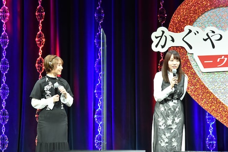 小原は「千花ちゃんはキャラの中で唯一恋愛をしている面を見せない。彼女だけそんなに変わらないんですよね。みんなと違って底抜けに明るく、底抜けに頭が……ね(笑)」と客席を笑わせつつも、「そんな変わらない部分を演じ続けられるのが楽しいです」と笑顔を見せる。また鈴木は石上を「最初は恋愛がどうのこうの以前に人間が怖いというキャラだった」と表現。「生徒会のメンバーと関わって、人と触れ合うことなどへの恐れをなくしていった、強くなっていったキャラクターだと思います」としみじみ話す。そして富田は「ミコは文字通り生真面目な子。彼女も生徒会に入ったことでどんどん人間的に成長できているなあと思います。私も2期の途中から『かぐや様』の現場に入ったというところで、途中から生徒会に入った彼女と境遇が似ていて。私もこの場にいる皆さんに刺激をいただいています」と語った。