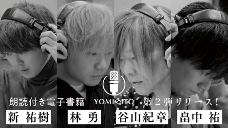 声優が朗読した名作文学などを、音声付き電子書籍としてリリースするレーベル「YOMIBITO」。商品にはクラシックミステリーや定番の名作、童話作品などのテーマが設けられ、1作品を複数巻に分けて展開される。価格は1巻税込350円。ソニーの電子書籍ストア・Reader Storeで配信される。