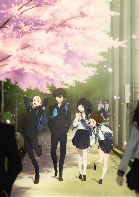 米澤穂信の小説を原作とする「氷菓」は、省エネを信条とする男子高校生・折木奉太郎が、千反田える、福部里志、伊原摩耶花という古典部のメンバーとともに数々の謎を解き明かしていく青春学園ミステリ。アニメーション制作を京都アニメーションが務め、2012年に放送された。