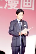 そして今回受賞した作家陣からの挨拶に移る。まずは「転生したらスライムだった件」の原作者である伏瀬が壇上に上がり、「マンガ家ではないのにこのような場に立たせていただいて光栄に思ってます。自分が読みたいものを書こうという気軽な気持ちで書き始めた作品が、川上先生の画力によってマンガになり、多くの人に読んでもらえたのは大変幸運だったと思います」と感謝の言葉を述べる。続く川上は「原作の面白さを引き出せているのかとずっと不安でしたが、今までが間違ってなかったのかもしれないと自信を持ててうれしく思いました。この先、迷ったときも『賞をいただけたんだから』と最後まで自信をもって進めていきたいと思います」と意気込みを語る。そしてキャラクター原案のみっつばーも「自分だけでは上がってこれないところに、おふたりが引っ張り上げてくれている状態だと思います」と、伏瀬と川上に対する思いとともに感謝を伝えた。