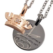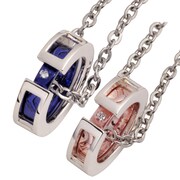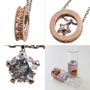 ネックレスは全部で5ペア10種類。レディースとメンズのトップをあわせるとチョッパーの頭部シルエットと「I became a panacea!(おれが万能薬になるんだ!)」のメッセージができる「万能薬」や、中央のキュービックを付属のルーペで覗くとチョッパーが見える「診断」をはじめ、「桜吹雪」「帽子・ログポース」「桜並木」などが用意されている。価格はペアで2万3100円~2万9400円。単体でも1万1550円から購入可能だ。