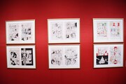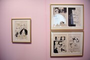 「【第2章】宝塚歌劇『ベルサイユのばら』」には、宝塚歌劇版「ベルサイユのばら」でオスカルとアンドレが愛を誓いあう“オスカルの部屋”を再現したコーナーが。オスカルとマリー・アントワネットが身に着けた舞台衣装や小道具、過去の公演ポスター、衣装のデザイン画といった資料も並ぶ。「【第3章】TVアニメ『ベルサイユのばら』」では、1979年に放送されたTVアニメ「ベルサイユのばら」にフィーチャー。セル画や原図、台本が公開され、演出の特徴や見どころが解説された。