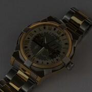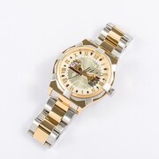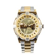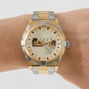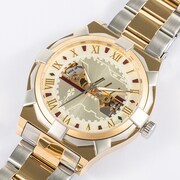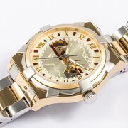 永野が監修を務めた今回のコラボアイテム。腕時計はマグナパレスの内部を覗き見るかのようなオープンハート仕様で、秒針はガット・ブロウを模し、シースルーバックの裏蓋にはレディオス・ソープとラキシスのシルエットがプリントされた。機体からインスパイアされた型押しやステッチを施したボディバッグは、内装にバスターランチャーなどのモチーフにラキシスとカレンを彷彿とさせる装飾を組み合わせたオリジナルテキスタイルを使用。またL字ファスナータイプの長財布は砂塵から現れる幻想的な帝騎マグナパレスの姿を表現。小銭入れ部分はバッグと共通のオリジナルテキスタイルが使用された。なおSuperGroupiesの特設ページでは、コラボを記念した永野のインタビューも掲載されている。