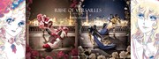 パンプスはマリー・アントワネットとオスカルをイメージしたもの2種をラインナップ。マリー・アントワネットのパンプスは小さなスパンコールがちりばめられたツイード生地を使用し、ロココドレスに身を包むマリーの姿が表現された。異素材を重ね合わせたリボンはマリーの髪型をイメージしており、中央には情熱的な真紅のバラがあしらわれている。
