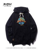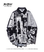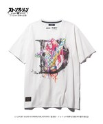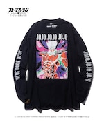 今回ラインナップされたのは、Tシャツ、ジャンパー、ロングスリーブTシャツ、フーディ、スウェット、ニット、総柄シャツなど全10モデル。敵の攻撃を受けて身体が縮んだ徐倫、通称・チョロ吉を表現した「Jolyne Pocket T」、スタープラチナの時を止める能力と音楽的なデザインを掛け合わせた「Sp Long Sleeves T」、エルメェスの特徴的なポーズをデザインした「E・Costello Hoodie」、エンポリオのコスチュームをオマージュした「E・Alnino Knit」など、glambが独自に描き下ろしたアートワークの新作アイテムが揃えられた。
