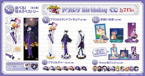 これは11月28日に誕生日を迎えるドラルクをお祝いして発売されるもの。ドラルクの描き下ろしイラストや劇中シーンなどを用いたタペストリー、アクリルスタンドフィギュアという、“ドラルクづくし”のアイテムがラインナップされた。また「10連セット」を購入した人には描き下ろしイラストを使用したハート型缶バッジをもれなく1個プレゼント。さらに「くじ引き堂」の公式Twitterアカウント(@kujibikido)をフォローのうえ、対象ツイートをRTした人の中から抽選で3人にはD賞の「76mm缶バッジ描き下ろし2種セット」が進呈される。