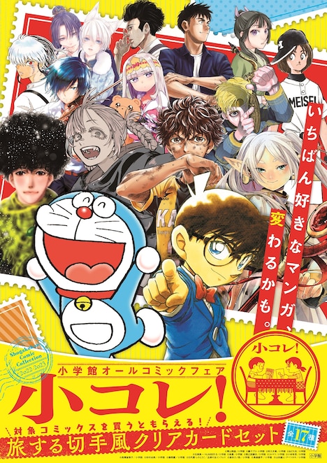 ノベルティとして用意されたのは、小学館の人気キャラクターがデザインされた「旅する切手風クリアカードセット」。3点セットになったシートが全17種類ラインナップされている。スマホケースやパスケースに入れて持ち歩いたり、周りの風景と重ねてお出かけ気分を楽しんだり、さまざまな楽しみ方ができるアイテムだ。ノベルティは対象作品の単行本1冊購入につき1枚プレゼント。なくなり次第終了となるほか、配布方法や対象作品は店舗により異なるため、詳細は最寄りの書店にて確認しよう。なお全17種のデザインやフェア参加書店リストなどの詳しい情報は「小コレ!」の公式サイトに掲載されている。