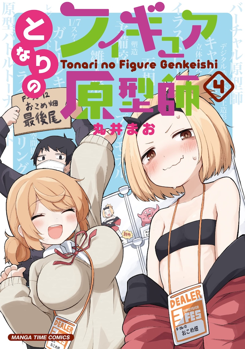 「となりのフィギュア原型師」は、フィギュア原型師・滝館おこめが代表を務める工房・おこめ畑を舞台にしたワイド4コマ。個人で活動していた半藤隆太郎が工房メンバーに誘われ、個性豊かな仲間たちと一緒にフィギュア原型制作の仕事をする物語を描く。4巻ではおこめ代表のもとに謎の招待状が届いたことから、フィギュア原型師たちが技術を競い合うバトルトーナメントが展開される。