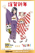 これはABCテレビ・テレビ朝日系列全国24局ネット「ANiMAZiNG!!!」枠で放送され、12月24日に最終回を迎えた「4人はそれぞれウソをつく」と、1月7日から同枠で放送される「老後に備えて異世界で8万枚の金貨を貯めます」の“バトンタッチ”を記念して描き下ろされたもの。イラストには着物に身を包んだ「4人はそれぞれウソをつく」のリッカ、「老後に備えて異世界で8万枚の金貨を貯めます」のミツハが描かれた。リッカの着物にはUFOのモチーフ、ミツハの着物には招き猫がデザインされ、お正月らしさ満載のビジュアルとなった。