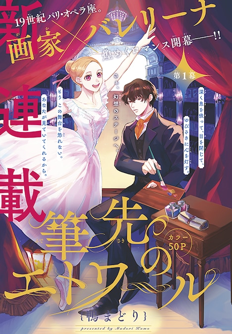「筆先のエトワール」の舞台は19世紀パリのオペラ座。バレリーナのエマは、踊るときに幻覚が見えるほど役にのめり込んでしまうことから、たびたび周囲に怒られてきた。そんな欠点を直そうと次のオーディションに備えている最中に、ぶっきらぼうな画家の青年・エドガーと出会う。彼はエマの踊り方に対して、それは本当に欠点なのかと問いかけてきて……。